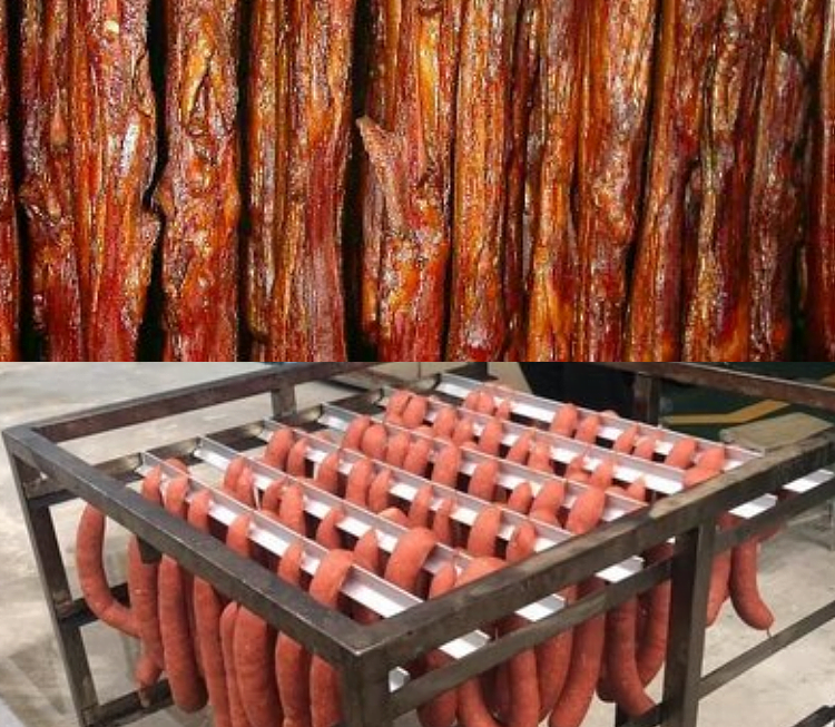 Giá treo, khay chứa: Linh hoạt treo xúc xích, lạp xưởng hoặc đặt thực phẩm khác.